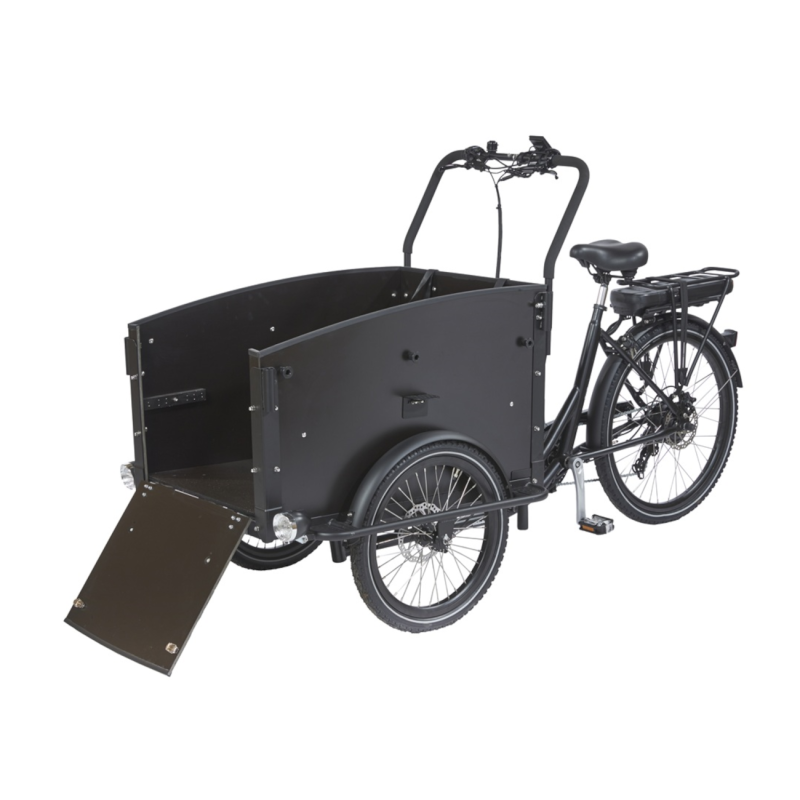 Komplekti kuuluvad varikatus, varikatuse raam, esi- ja tagaporilauad, pakiraam koormarihmadega, ketikaitse, kell, 2x LED esituld ja üks tagatuli, turvarihmad neljale lapsele, laste istmed neljale lapsele, astmelaud lastele.