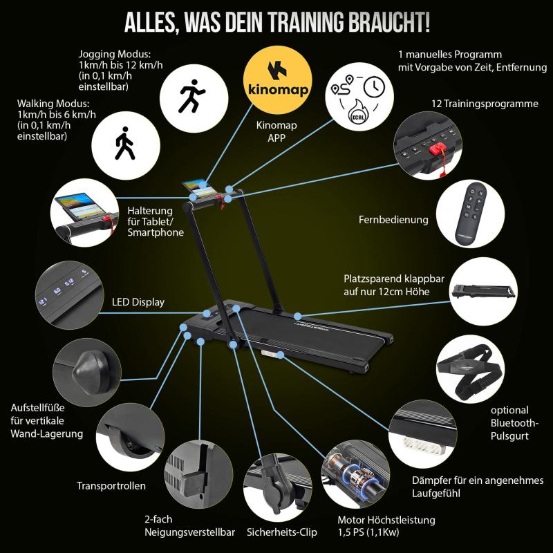 Jooksulint Christopeit Walk Run Pro on kompaktne kaks-ühes jooksulint mitmekülgseteks kodusteks treeninguteks. See innovatiivne käimislint kombineerib endas ruumi-säästva disaini ning mitmekülgse funktsionaalsuse. Tänu kokkuklapitavale käepidemele saab seda seadet kasutada nii käimislindina kui ka jooksulindina - ideaalne nii koju kui ka näiteks kontorisse. Käepide allavoldituna pakub seade kiiruseid kuni 6 km/h ning käepide üleval kuni 12 km/h. Lisaks on masinal automaatne õlitussüsteem, mis teeb sellest peaaegu hooldusvaba koduse masina. Seade on ühilduv Kinomap, Fithome ja Zwift rakendustega.