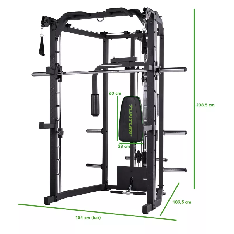 Jõupink TUNTURI SMITHI SM80 Tunturi SM80 täismõõdus Smithi kodujõusaalil on kõik, mida vajate täiskere treeninguks! Ideaalne, kui soovite kodus treenida, kuid samuti suurepärane ja täielik varustus jõusaalile või taastusravikeskusele.