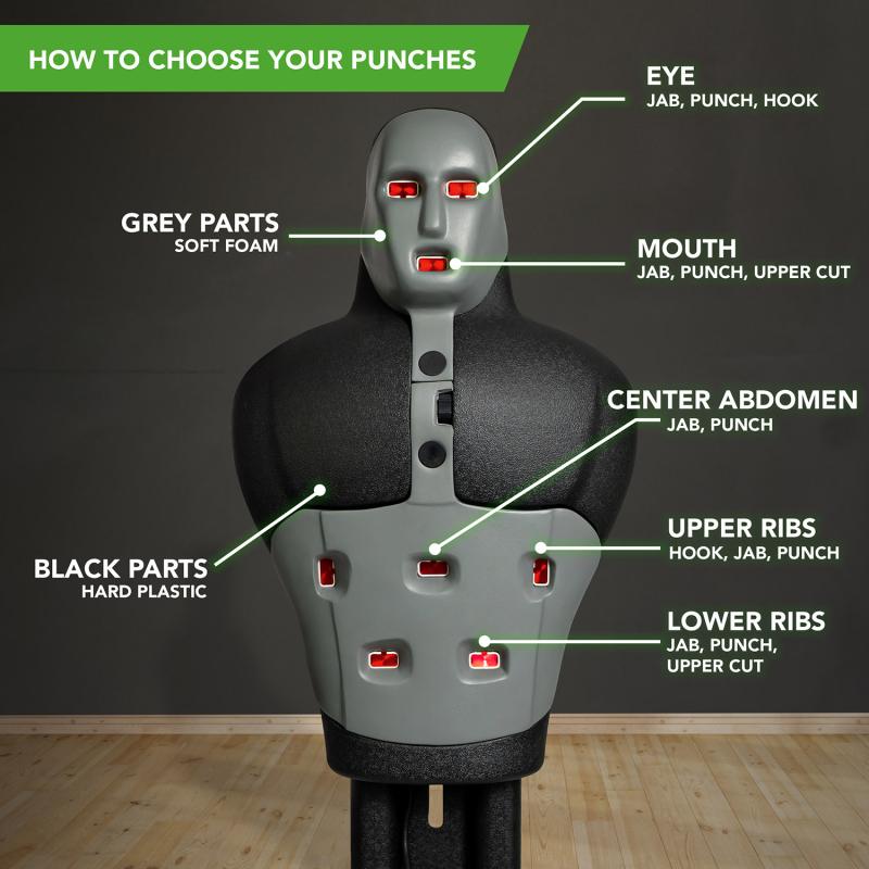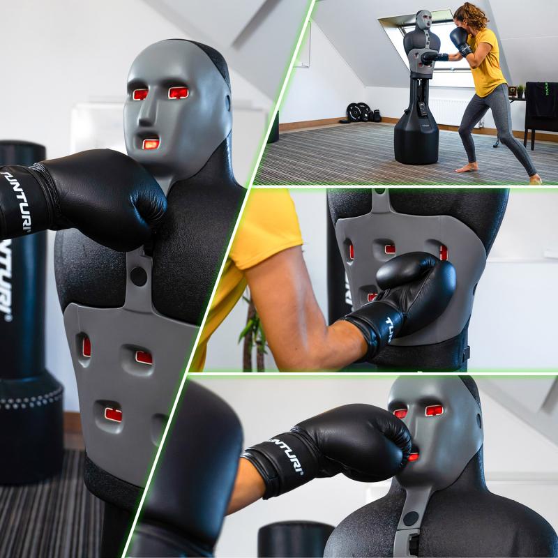 Tahad töödata oma löömise tehnikal realistlikul viisil? Selleks on Tunturi Slam Man suurepärane! Arvuti poolt juhtiv nukk suudab sind treenida koguaeg uusi ja erinevaid väljakutseid pakkudes. Nukul on 15 arvuti programmi ja 3 treening taset. Arvuti näitab tulede abil kuhu ja millal lüüa. Paigaldus on lihtne, paigalda nukk tasasele pinnale ja täida alus kas veega või liivaga kuni 120kg, seega Slam Man on alati kindlal kohal stabiilselt paigal. Olenevalt oma pikkusest, saad ka nuku kõrgust reguleerida enda vajadusele.